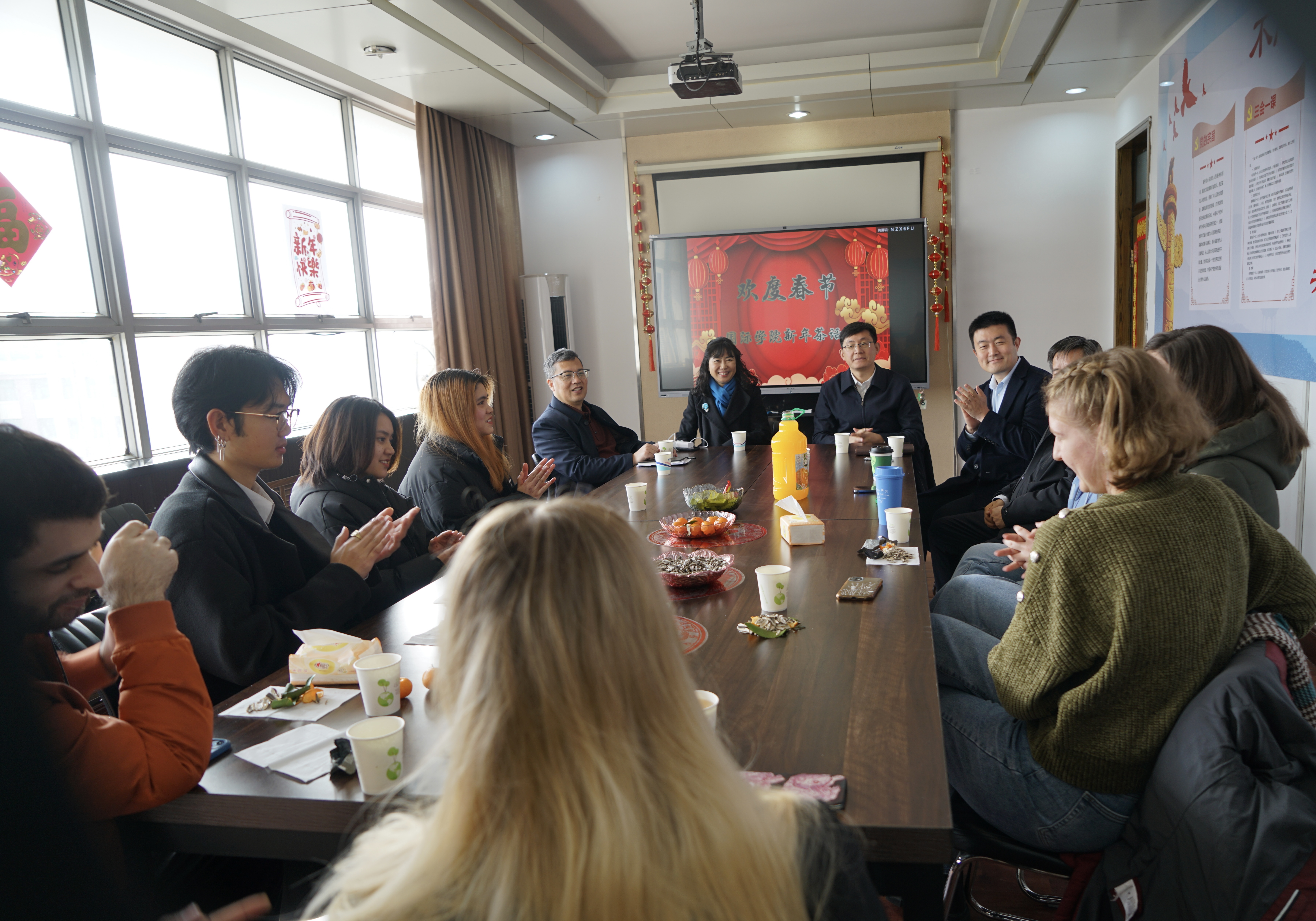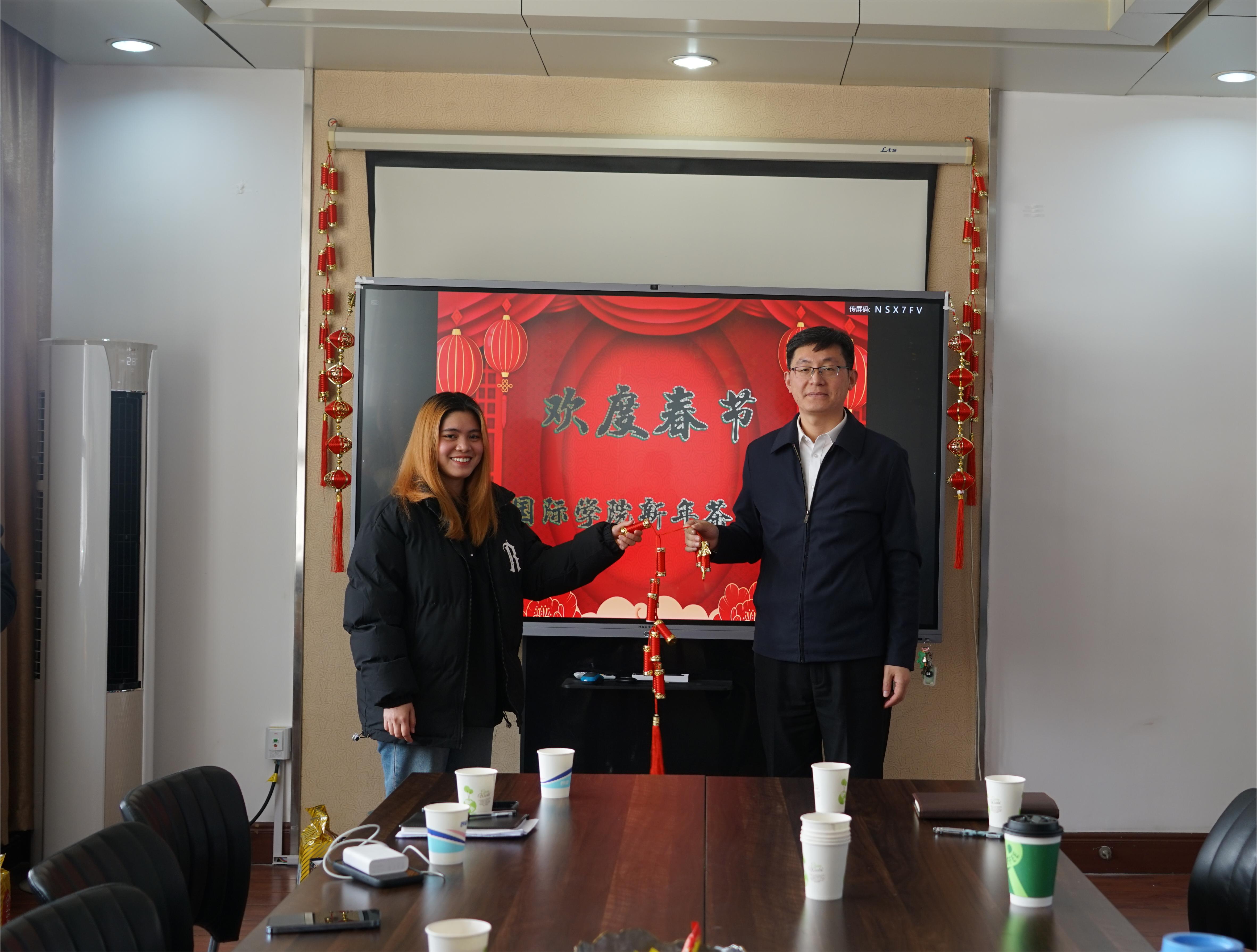 茶话会上,沈文青一行听取了职工在中国生活、在青科大学习的感受与体会,对职工积极进取的精神风貌表示肯定,希望他们把中国当成自己的第二故乡,把青科大当成自己的第二个家,用心感受、分享在中国的所见所闻,讲好中国故事、科大故事。同时,建议大家加深对中国文化的认识与理解,做好中外文化交流融合的桥梁和纽带;希望大家发扬青科大的优良学风,认真向学,将来更好地把在公司学到的知识和本领运用到家乡的建设发展中去。她叮嘱同学们寒假期间注重阅读,加强锻炼,保重身体。最后,沈文青祝愿同学们学业有成,龙行龘龘、前程朤朤。